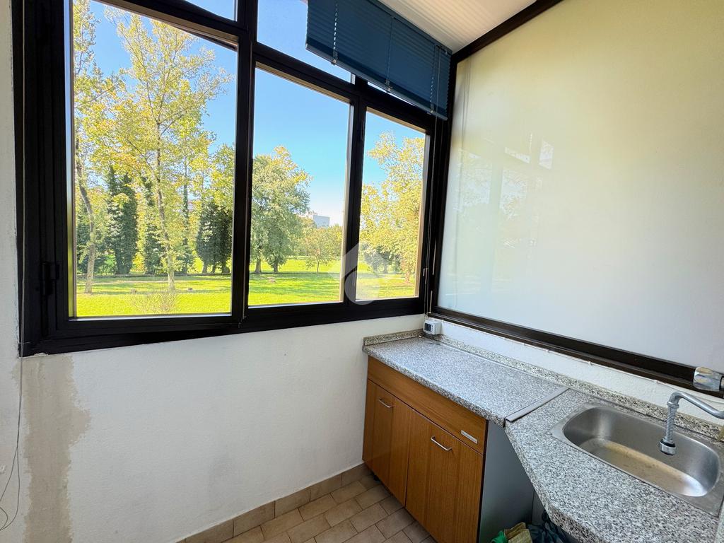 Viale Divisioni Garibaldi-Osoppo, appartamento tricamere biservizi posto al primo piano di un condominio edificato a metà degli anni ’80 provvisto di ascensore.
