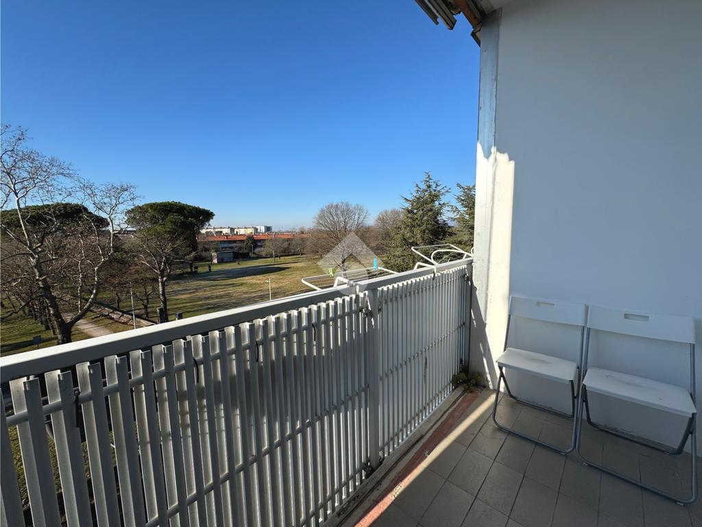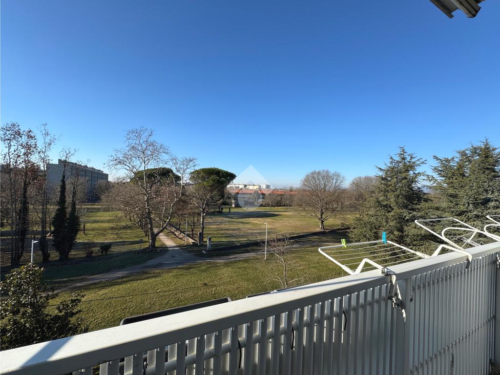 Un disimpegno d'ingresso conduce alla zona giorno, costituita da un luminoso soggiorno impreziosito da una terrazza che affaccia sul verde e da una cucina abitabile.