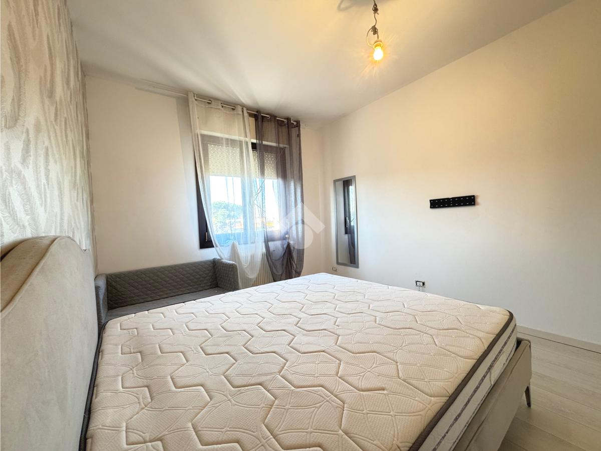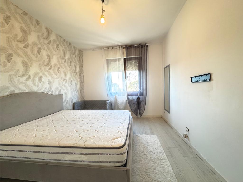 Un corridoio introduce al reparto notte, nel quale trovano spazio la camera da letto matrimoniale, il bagno finestrato dotato di box doccia e un pratico ripostiglio.