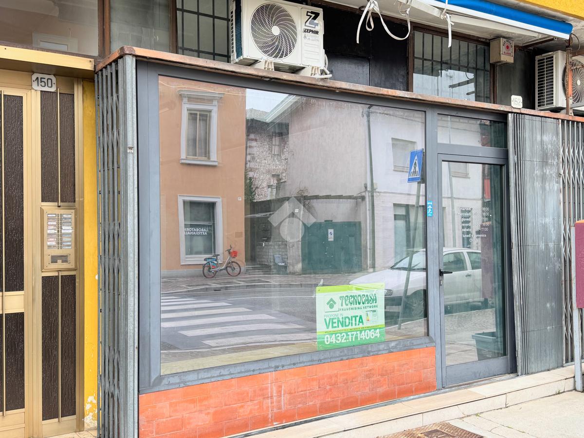 Via Cividale, locale commerciale vetrinato situato al pianterreno di una palazzina edificata negli anni '60.