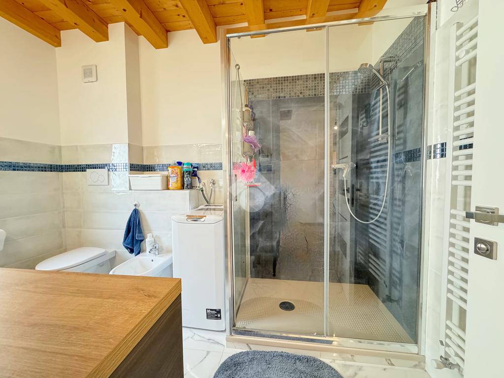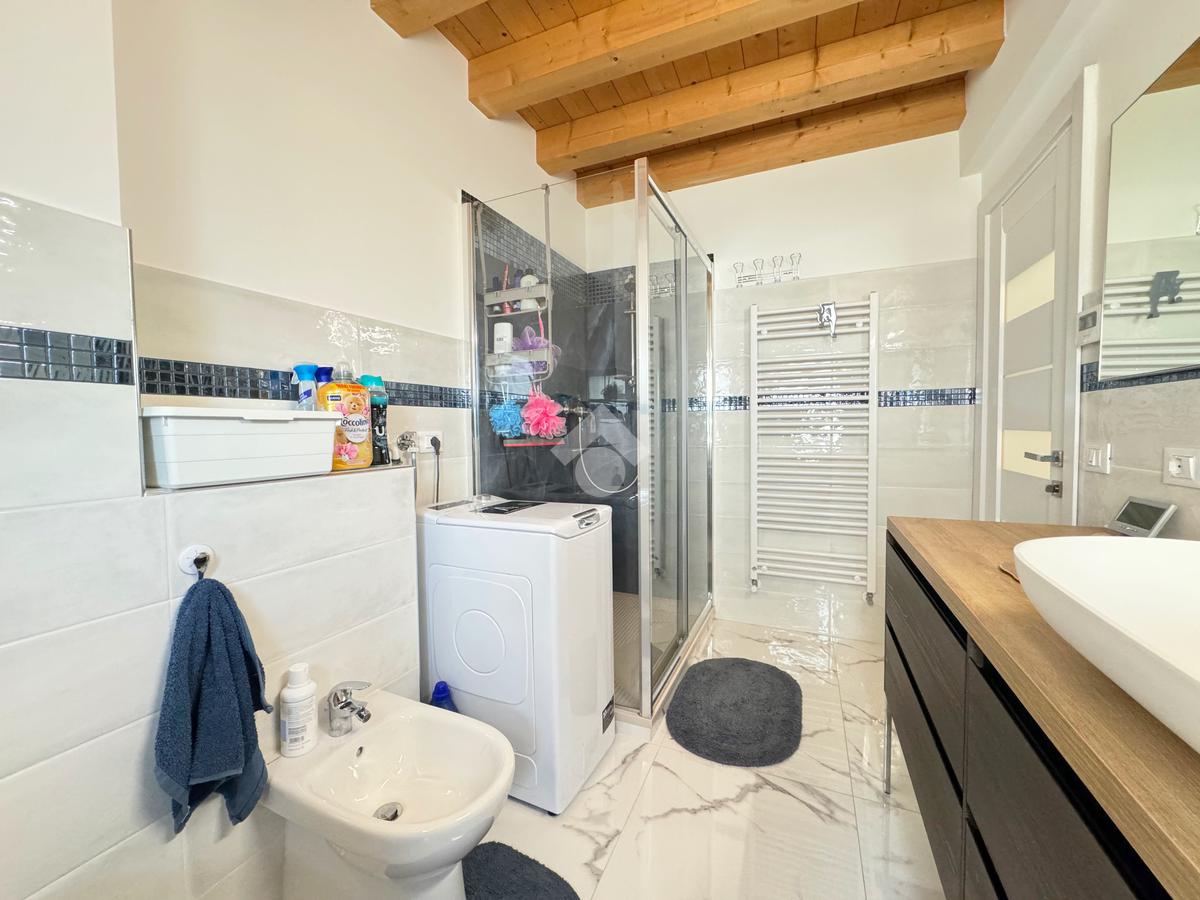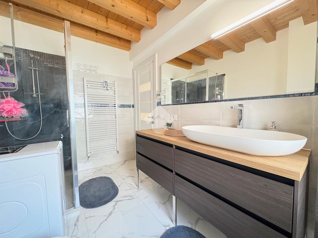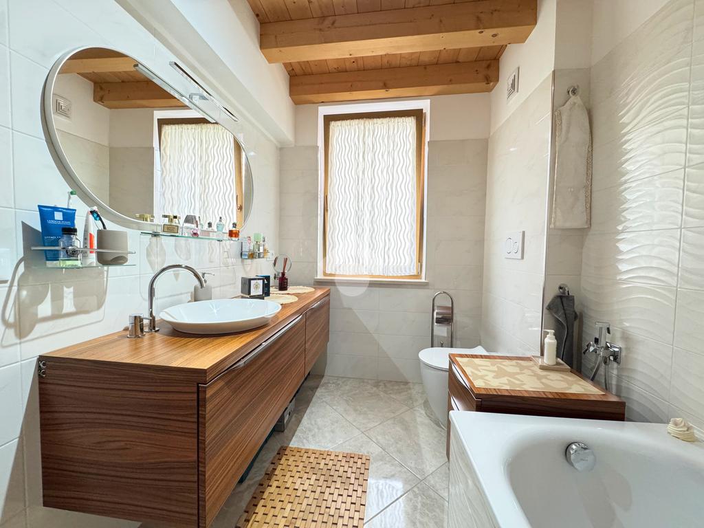 Il reparto notte, al piano superiore, è costituito dal secondo bagno finestrato con box doccia e dalle tre camere da letto, di cui un'ampia singola e due matrimoniali, una delle quali impreziosita dalla terrazza.