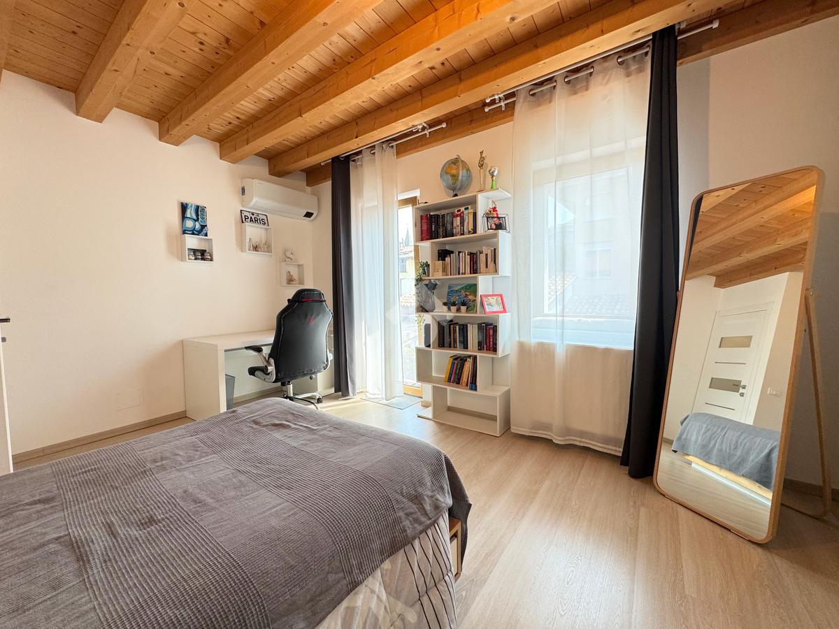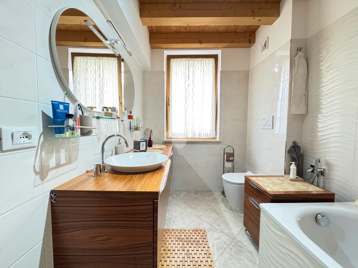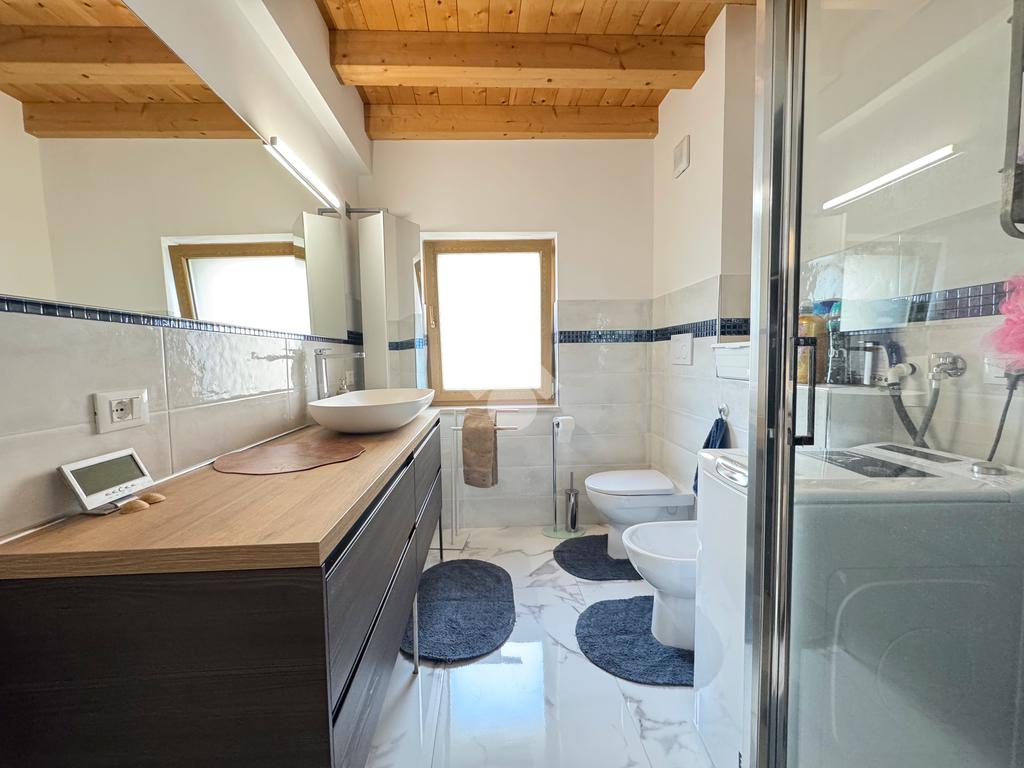 Il reparto notte, al piano superiore, è costituito dal secondo bagno finestrato con box doccia e dalle tre camere da letto, di cui un'ampia singola e due matrimoniali, una delle quali impreziosita dalla terrazza.